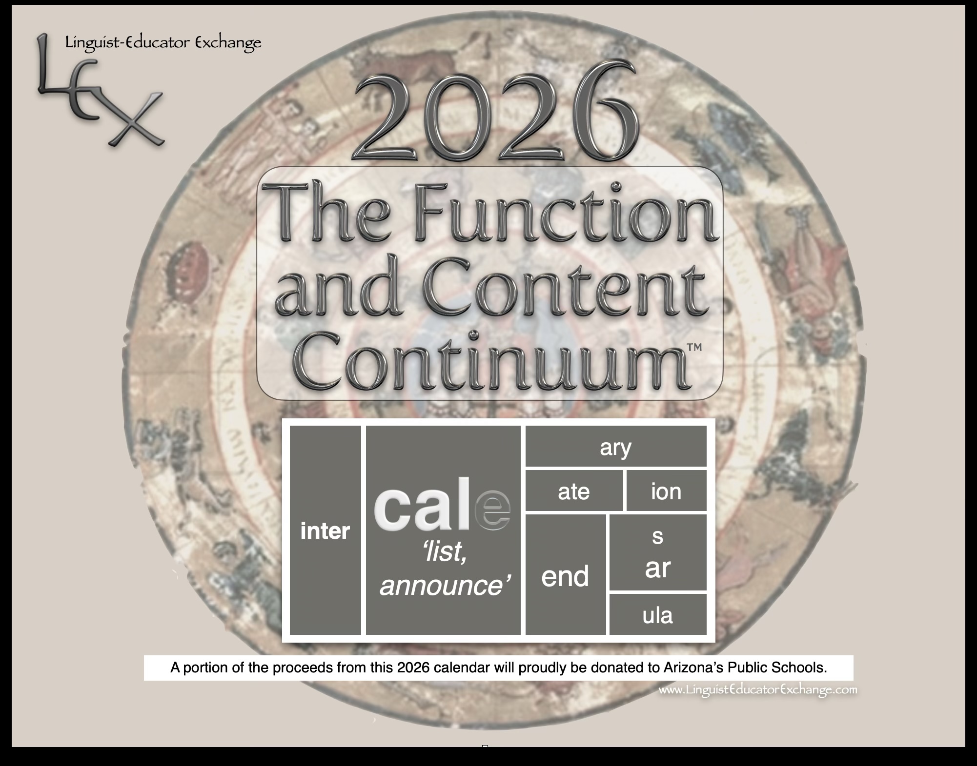 4. The Function & Content Continuum LEX Calendar. Each month features a study of Function & Content homophones and their orthographic characteristics.